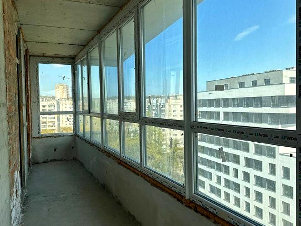 Зонування квартири: передпокій, кухня-вітальня з балконом та 2 ізольовані кімнати, велика лоджія, 2 санвузоли