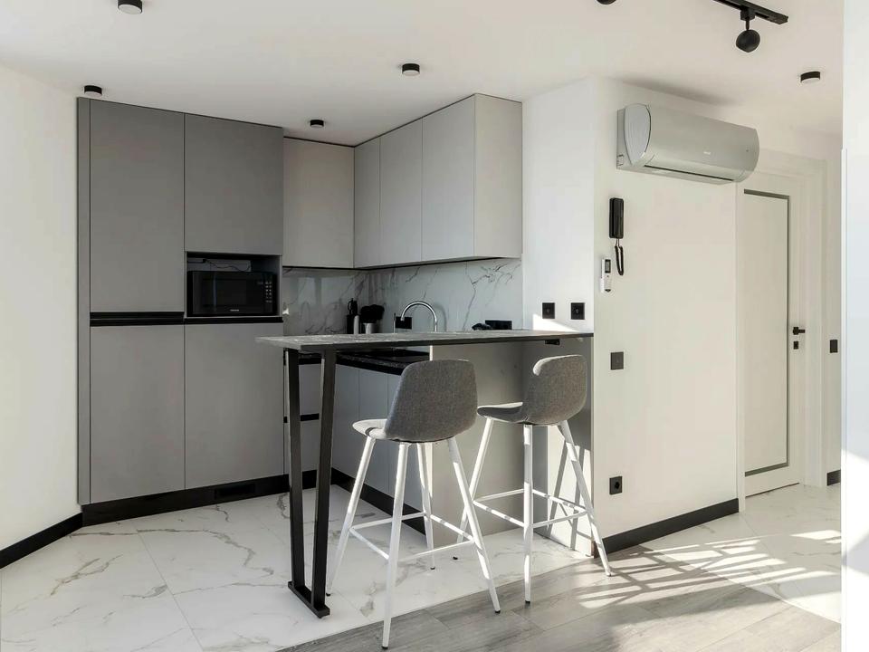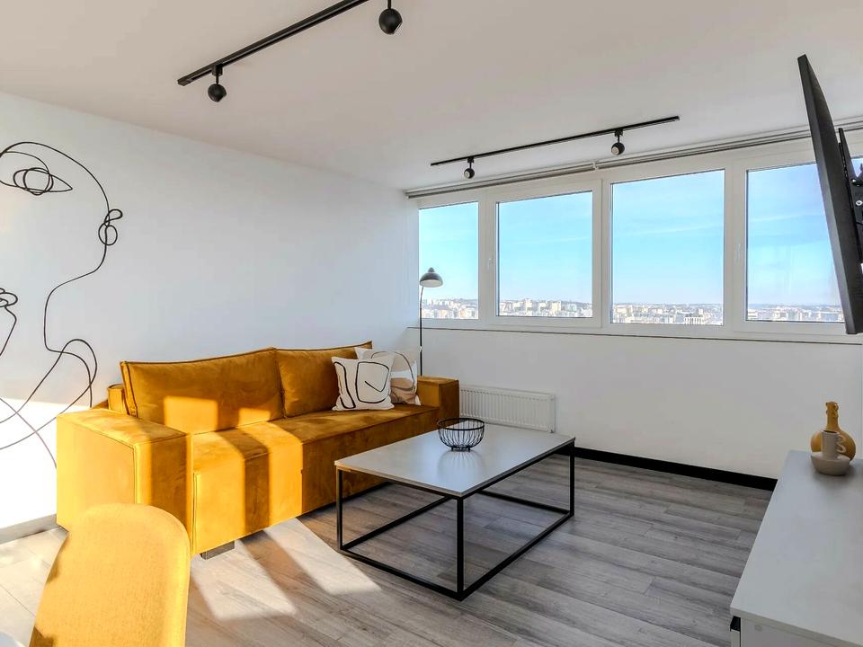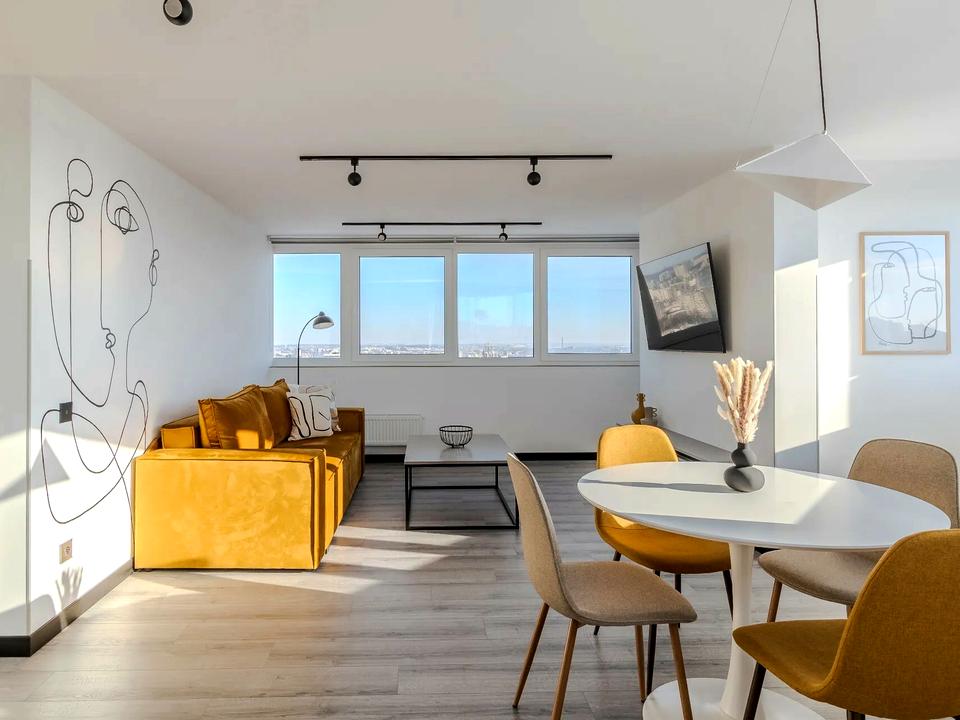 Простора кухня-студія, з усією необхідною технікою та місцем для відпочинку. Ізольована спальня з двоспальним ліжком. Ізольована кімната з робочим місцем. Гардероб. Санвузол з ванною. Панорамні вікна з неймовірним видом на місто. Переваги: посудомийна машина, кондиціонер, тепла підлога, індивідуальне опалення.