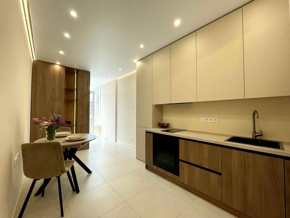 Поверх 8/9. Загальна площа квартири 41,1 кв.м. житлова площа 15,4 кв.м., кухня 14,3 кв.м. В квартирі є незасклений балкон, вихід на який із кухні, також є гардеробна. В квартирі зроблено підігрів підлоги, виконано якісний та сучасний ремонт. Облаштовано побутовою технікою ( вмонтований холодильник, варильна поверхня, духова шафа), та необхідними для проживання меблями. Квартира світла та затишна. Хороший варіант під інвестицію та для власного проживання.