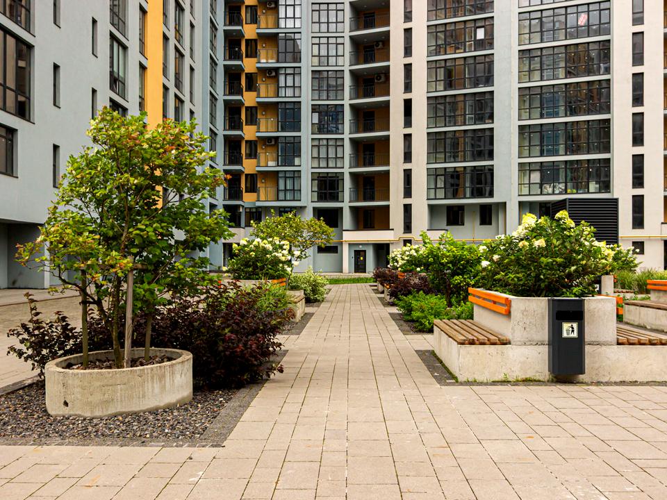 Облагороджений внутрішній дворик з зеленими зонами