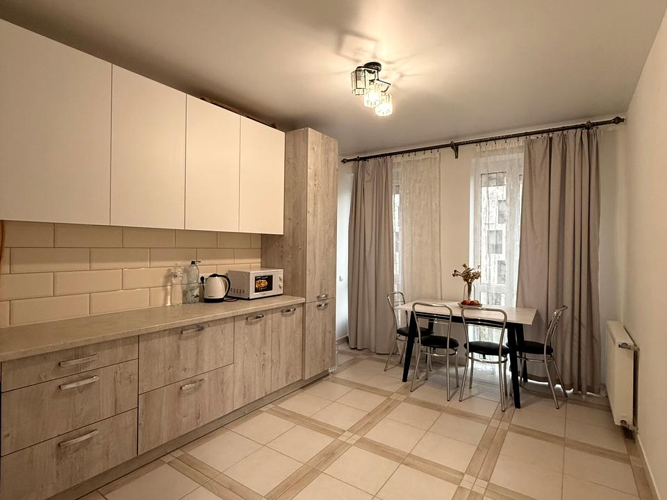 Квартира з сучасним ремонтом, укомплектована всім необхідним для комфортного життя — меблі, побутова техніка, індивідуальне опалення та тепла підлога.