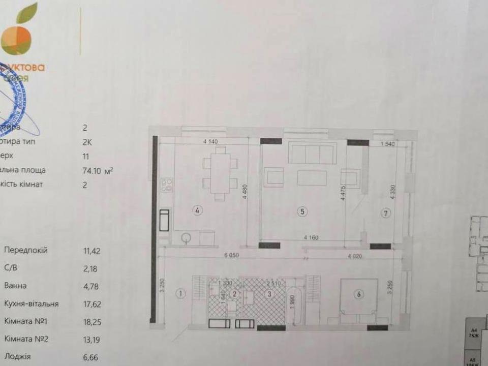 Загальна площа: 74.10 м²