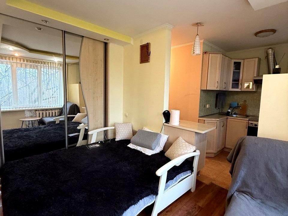 В квартире 1 комната, высота потолков 2.5 метра, Технологія будівництва - Цегляна, Тип будинку - Гостинка. Планировка комнат Студия. В квартире есть Шкаф, Стиральная машина, Счетчики. Дом построен в 1977 году. Общее состояние квартиры - С ремонтом. Комиссия за услуги 5 %