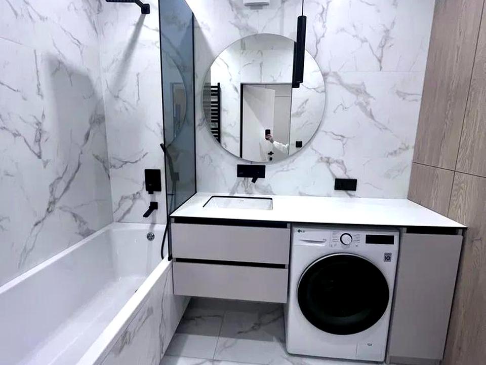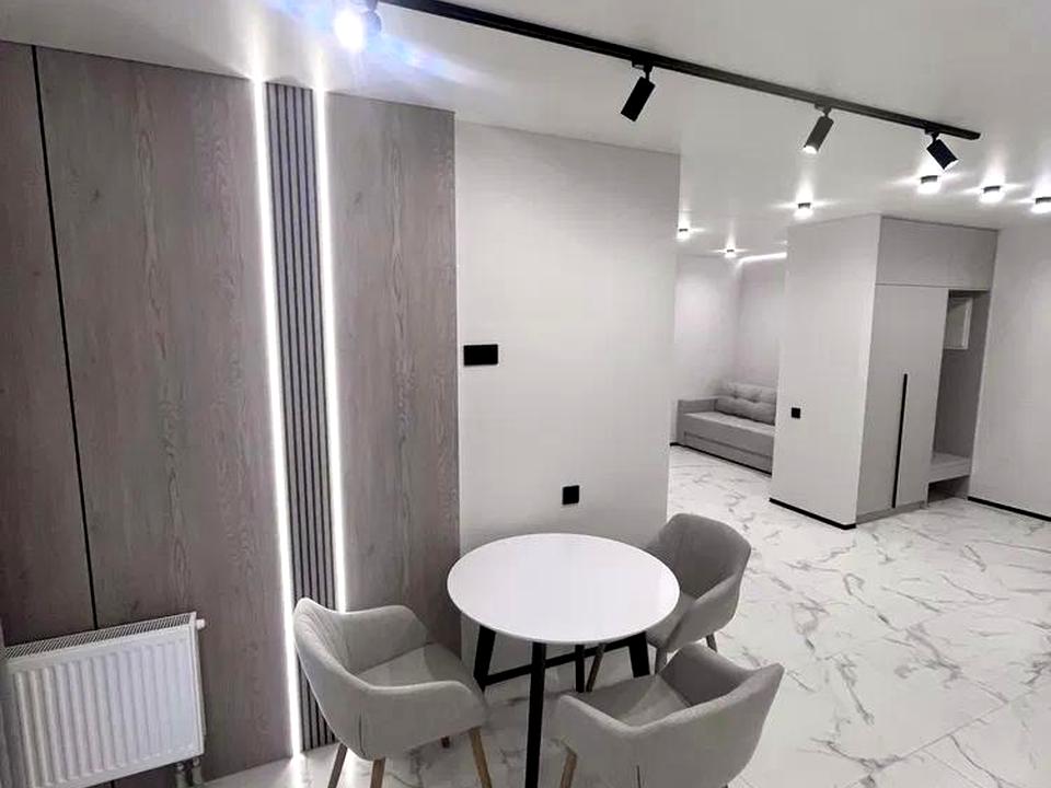 Це квартира для тих, хто цінує естетику, комфорт і готові рішення. Світлий інтер’єр у спокійних тонах, великоформатна плитка, стильне освітлення та скляна гардеробна зона створюють відчуття простору.