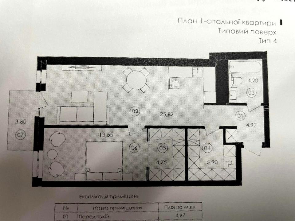 В квартире 1 комната, высота потолков 2.8 метра, Технологія будівництва - Монолітно-каркасна, Тип будинку - Спец. проект. Есть балкон. Дом построен в 2026 году. Общее состояние квартиры - Без ремонта. Количество санузлов: 1. Количество спален: 1. Есть подземный паркинг, доступный как укрытие. Комиссия за услуги 5 %