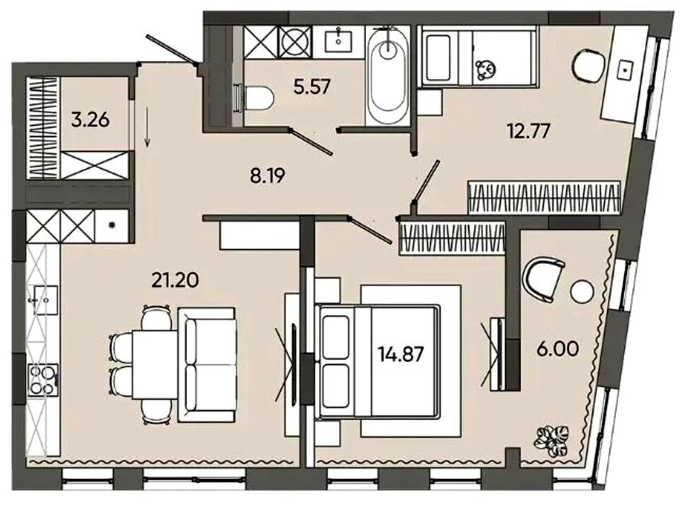 Загальна площа - 71,82 м2, кухня - 21,20 м2