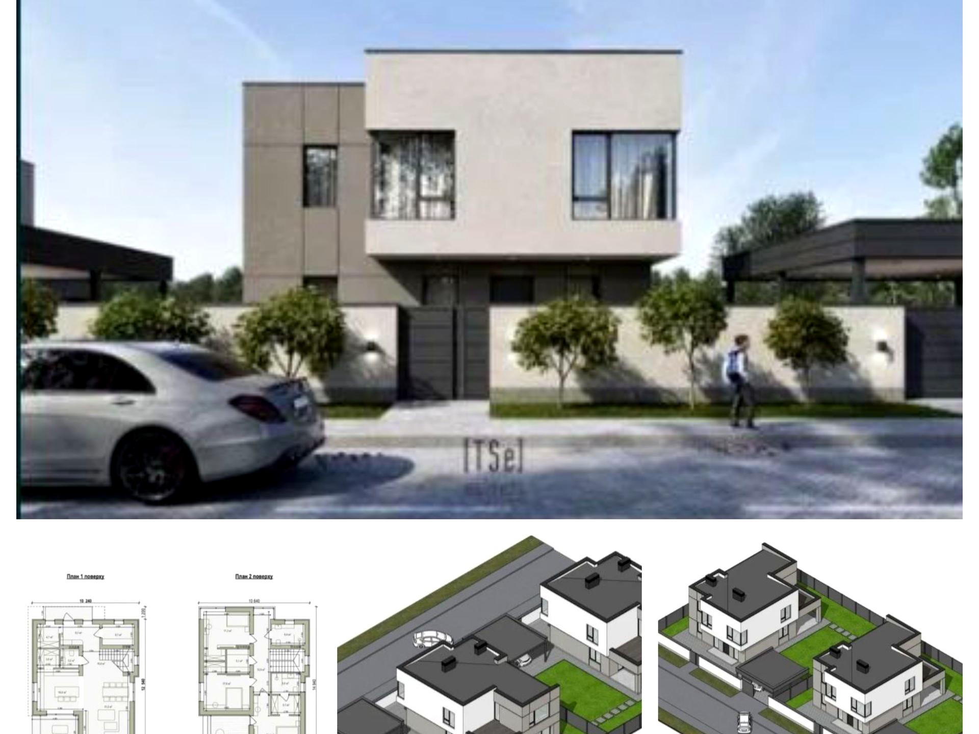 Другий поверх: три спальні, 2 гардеробні, два санвузли, коридор, відкрита тераса.