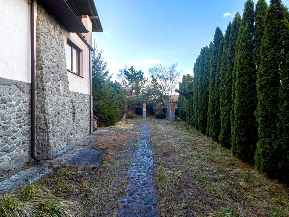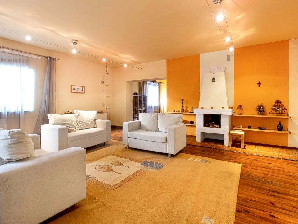 Загальна площа будинку 374 кв.м., житлова площа 103,3 кв.м., кухня-їдальня 43 кв.м., чотири санвузли, три спальні, вітальня, камін.