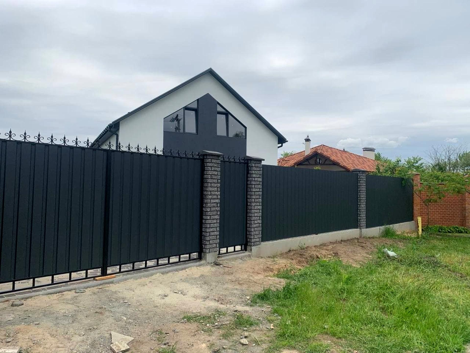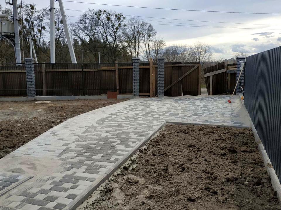 Кордони земельної ділянки обладнані парканом з фундаментом та металопрофіль загальною висотою 1,9 м, фасадна частина обладнана відкатною брамою під автоматику, територія земельної ділянки рівної форми, паркувальне місце під два автомобілі з плитки фем.