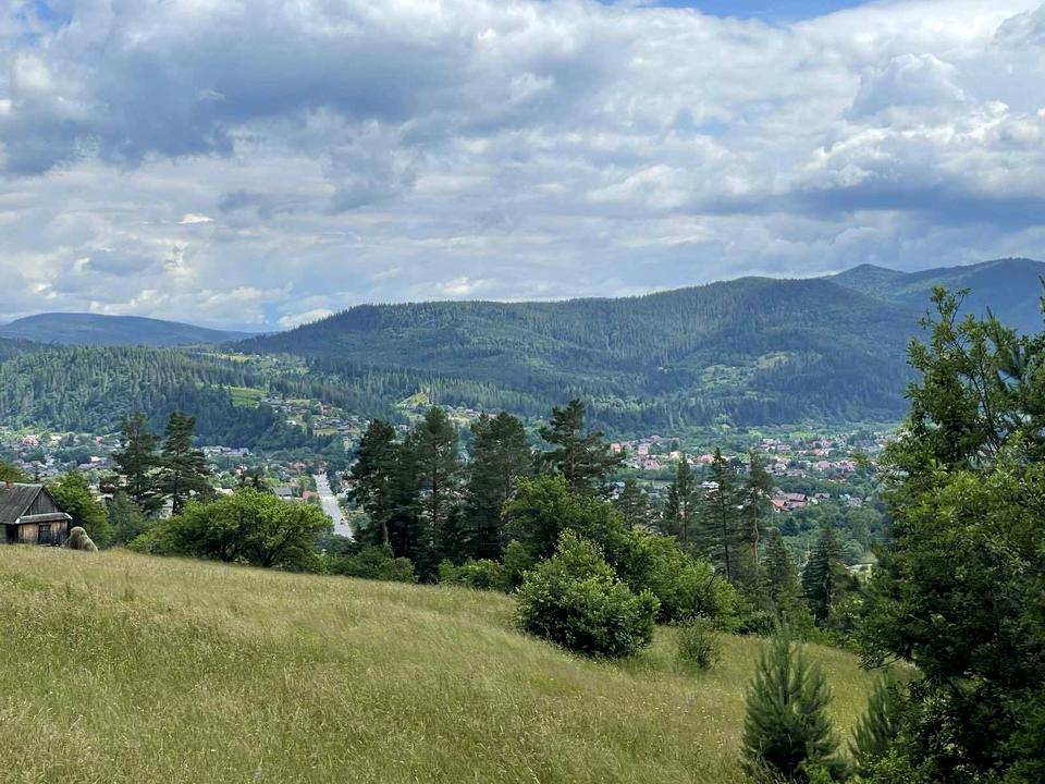Ділянка видова, з неймовірним панорамним краєвидом на гори, ідеально підходить для будівництва житлового будинку або відпочинкового котеджу.