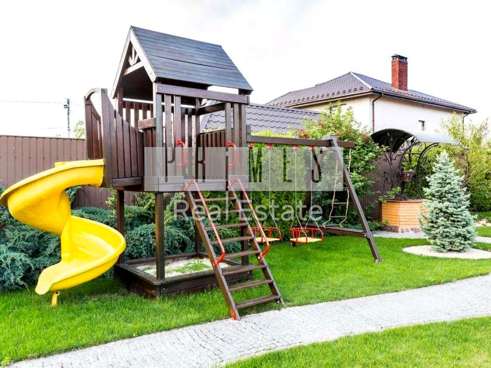 Розкішний будинок у селі Міла Житомирською трасою. 10 км від метро Житомирська. 100 метрів від лісу та 300 - метрів від каскаду озер заміського комплексу "Два Бобрі" 3 поверхи. Ідеальне місце для життя сім'ї із дітьми. Ділянка 15 соток. Ландшафтний дизайн. Автоматичний полив. Вода – скважина 95 метрів, а також криниця з чистою джерельною водою. Теплий гараж на 2 авто, підвал. Опалення газове, економічний котел Viessmann. Великий зал з каміном та кухня - столова 75 кв. м. – на першому поверсі будинку. Підлога з підігрівом. Кабінет. Інтернет – виділена лінія оптоволокно. 5 спалень (у кожній TV) 3 санвузли (по одному на кожному поверсі) Усі інженерні системи працюють ідеально. Генератор 10 кВт для аварійного живлення будинку.