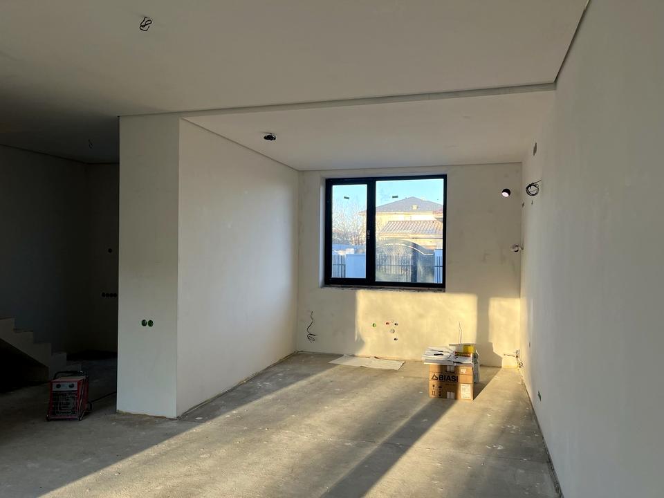камін, зроблено всю необхідну розводку електроенергії (вивід на освітлення та розетки), теплу підлогу. Стелю змонтовано гіпсокартоном та зроблено тіньовий шов, стеля та стіни шпакльовані, готові під фарбування. Готовність ремонту -50%.
