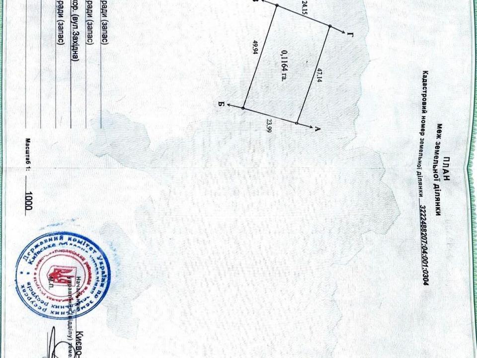 Продаж земельної ділянки, що розташована в с. Мрія, вул. Західна, 2.