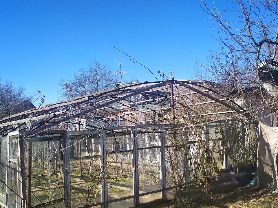 На території забудова:гараж,літня кухня,теплиця
