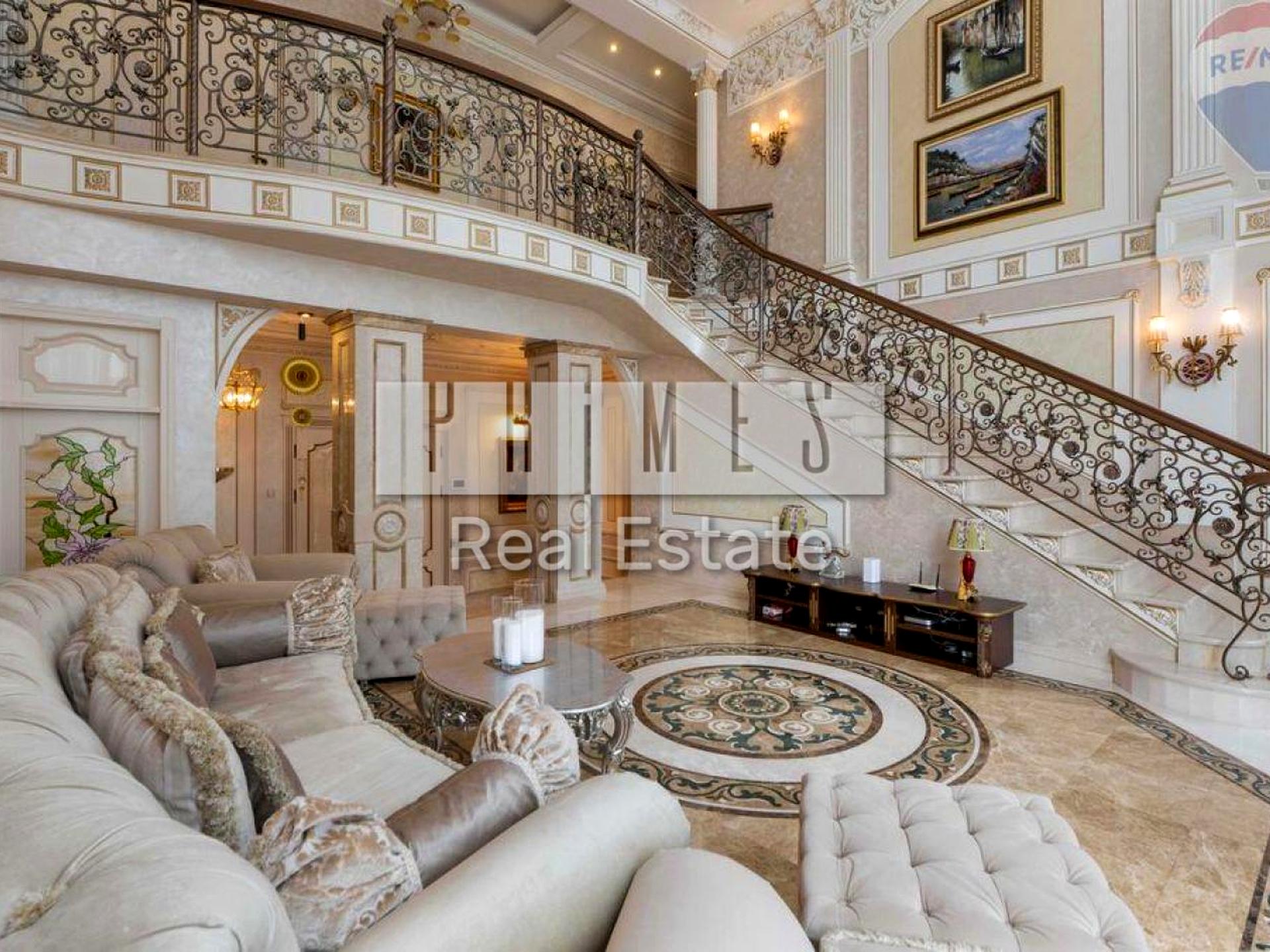 Продаж ексклюзивного домоволодіння у найкращих традиціях італійської класики. Унікальне місце розташування в оточенні вікового лісу, всього за 30 хвилин від Києва по Новообухівський трасі (Обухівській р-н, с. Нещерів 1588 р. ). Ідеальне місце для тих, хто прагне гармонії з природою щоб прокидатися під спів птахів, дихати ароматним запахом лісу, релаксувати та проводити час з найдорожчими. Домоволодіння розташоване на закритій прибудинковій території (60 соток) з чудовим ландшафтним дизайном, під охороною з цілодобовим відео спостереженням (32 камери). Інтер'єр будинку виконаний в інтелігентній стриманій стилістиці та є взірцем респектабельності - тут все дихає шляхетністю та аристократизмом. Планування основного будинку: великий зал з подвійним світлом; кухня – столова з виходом на простору терасу; майстер спальня; три спальні з гардеробними та ванними кімнатами; кабінет; кінотеатр, спортзал, сезонні гардеробні кімнати (в цокольному поверсі). Втілити в інтер'єрі найвишуканіший у світі стиль неможливо без використання дорогих, природних та екологічних матеріалів. Всі матеріали інтер'єру, меблі, світильники, сантехніка – виробництва елітних брендів Італії та Франції (на замовлення). В будинку немає другорядних приміщень, кожна кімната є унікальною. Приміщення вражають своїми високими стелями та безліччю витончених ліній і декоративних елементів. Ідеально підібране багаторівневе освітлення дизайнерськими світильниками. Ексклюзивні мармурові колони та вітражі "Tiffany" розділяють простір холу та зал для прийому гостей. Дизайн залу з розкішними сходами та мармурової кладки у поєднанні з художньою ковкою, по центру мармуровий килим з трьох контрастних відтінків, камін та меблі преміум класу. Гарнітур для обідньої зони з інкрустацією і застосуванням золочення. Обідній стіл на 7 персон розміщений на мармуровому килимі. В інтер'єрі Майстер спальні справжній витвір мистецтва - поєднання природності та шику, витончене різьблення по дереву із застосуванням золочення та розпису поверхонь. Господарська ванна кімната класу люкс спроектована та оздоблена як повноцінний житловий простір – тут все продумано до дрібниць. Простора гардеробна кімната. Всі меблі (зал, спальні, столова, кухня, ванни кімнати) та техніка преміям класу. Основний будинок загальною площею 470 кв. м. , гостьовий будинок 150 кв. м. з сауною, купелю та великим відкритим переливним басейном, будинок для обслуговуючого персоналу та охорони, гараж на три машини та крита стоянка для двох машин. Фасад гаражного комплексу та гостьового будинку виконаний у стилі основного будинку. Комунікації: газовий та електричний котел; генератор на 40 кВт; свердловина 90 метрів; система фільтрації води; септик; система індивідуального регулювання та припливно-витяжна установка з рекуператором; система фільтрації та очищення води з рециркуляцією (для басейну); авто полів ділянки. Матеріали забудови: на підлозі натуральний мармур та деревина; венеціанська штукатурка на стінах; панорамні вікна та міжкімнатні двері виготовлені з масиву дубу по спецтехнології; італійська плитка в ванних кімнатах; будинок побудований з керамічної цегли з утепленням (товщина стін 1 метр); фундамент із залізобетону; перекриття з монолітного залізобетону; дах з італійської бітумної черепиці "Tegola"