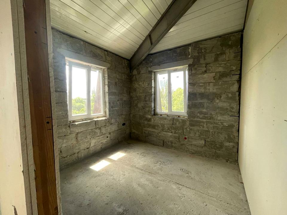 Квартира мансардного типу, розташована у теплому новому будинку з газобетону та цегли. Будинок зданий в експлуатацію у 2016 році.
