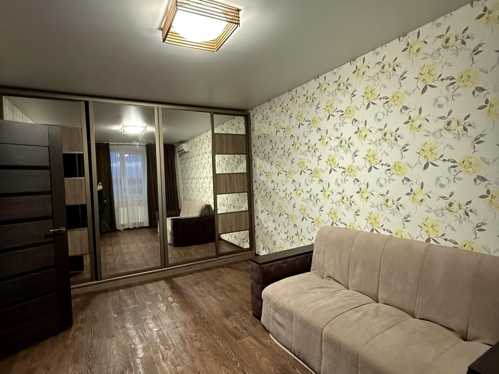 Шафа купе. Вбудовані кухонні меблі. Холодильник. Диван. Стіл. Телевізор.