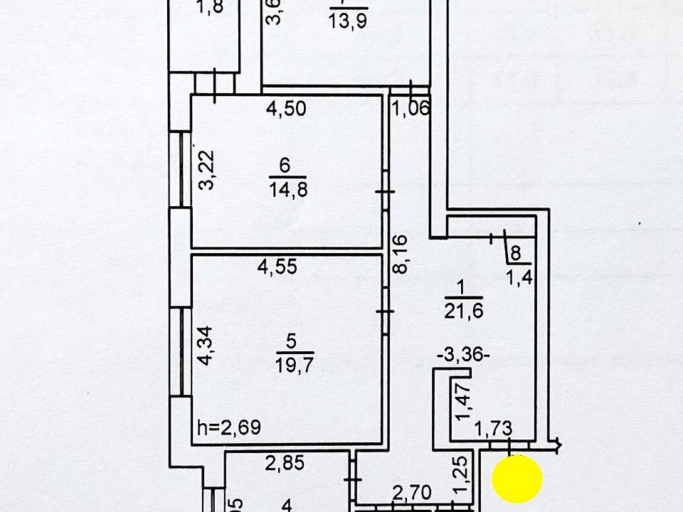 Висота стелі 2,70м. Окремі кімнати, великий балкон 3,20 х1, 60м, кухня 9м, великий хол-передпокій 13м, роздільний с/вузол.