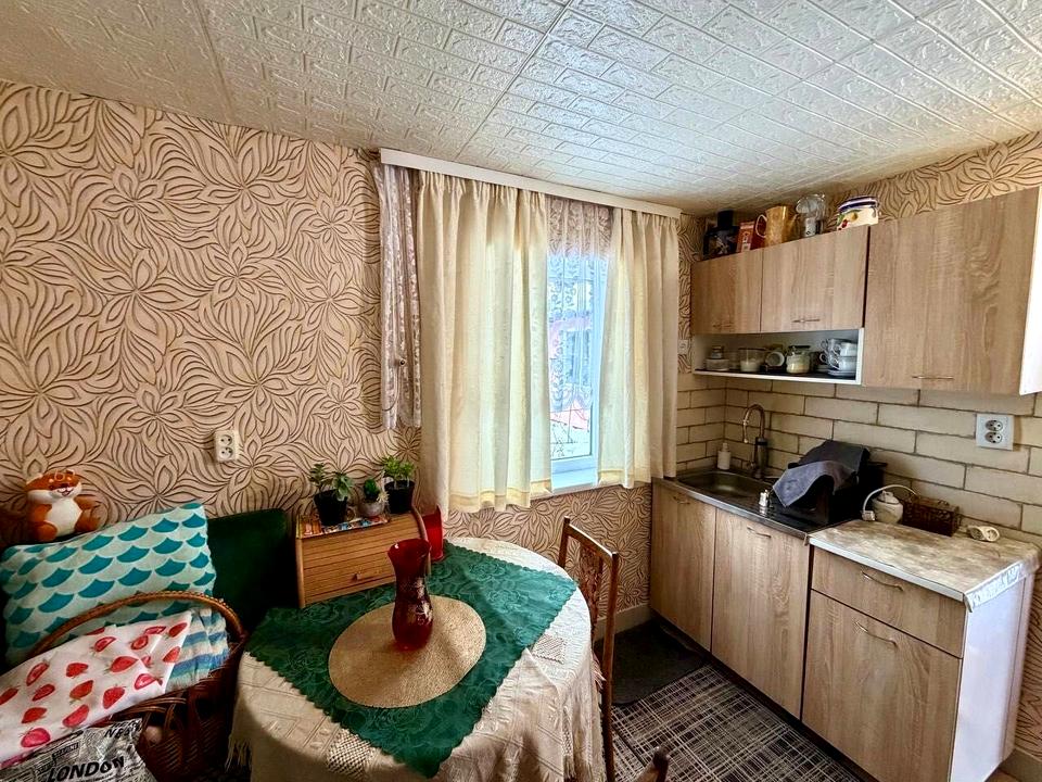 Дом, 2 этажа, 3 комнаты. Материал стен – кирпичный, материал перекрытий – сборный железобетон. Подъезд к дому – асфальт. Площадь участка 6 соток. Высота потолков 2.50 метра. Планировка комнат Раздельная. Покрытие полов: покрытие полов - дерево. Тип кухни - отдельная кухня. Своя канализация. Общее состояние дома - С ремонтом. Холодная вода - скважина. Горячая вода - электрический бойлер. Отопление печное. Количество санузлов: 1. Покрытие крыши - металлочерепица. Работает без света - отопление. Количество спален: 3. Комиссия за услуги 2 %