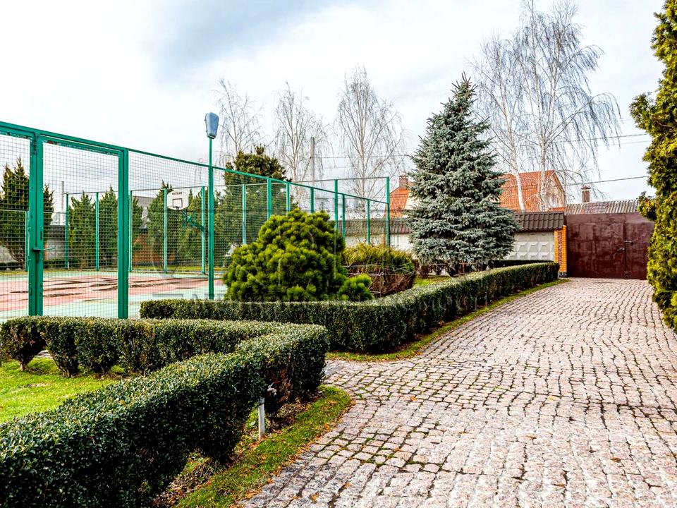 1. Основній будинок (589,4 м2): кількість поверхів чотири (цокольний + 2 поверхи + мансарда), спалень чотири, санвузлів чотири, гардеробів 3 та в кожній кімнаті окремі шафи, технічне приміщення одне, кінозал, спортзал, пральна кімната, більярдна кімната, бібліотека;