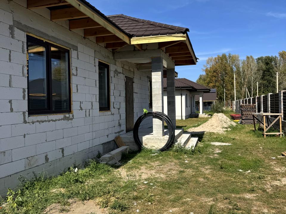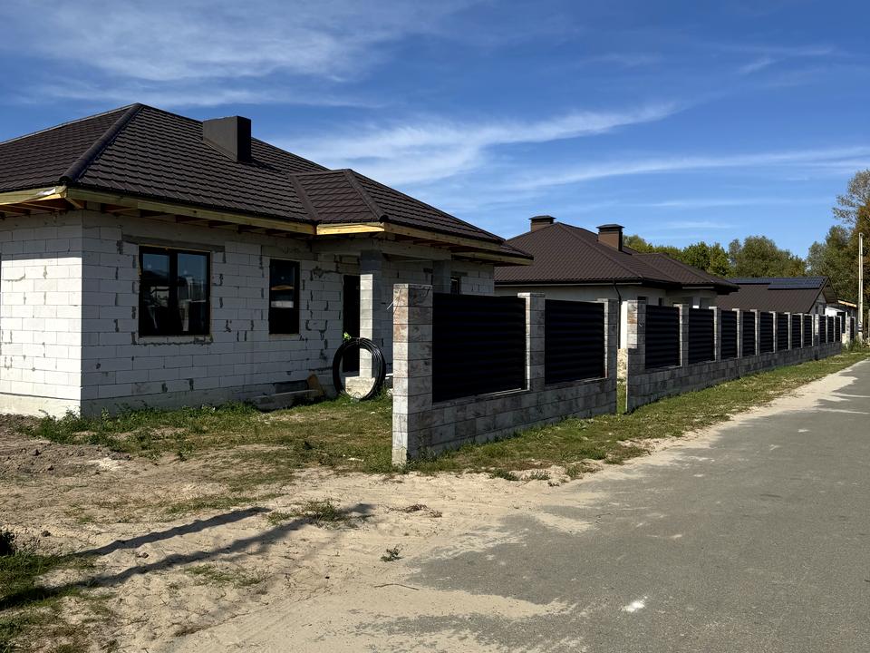 Також влаштована скважина глибиною 53м.п . Встановлений глибинний насос , автоматика і гідро акумулятор . Тобіж одним словом вода в будинку . Газопостачання проходить вздовж паркану . Електропостачання заведене на лічильник ( 5 кіловат).