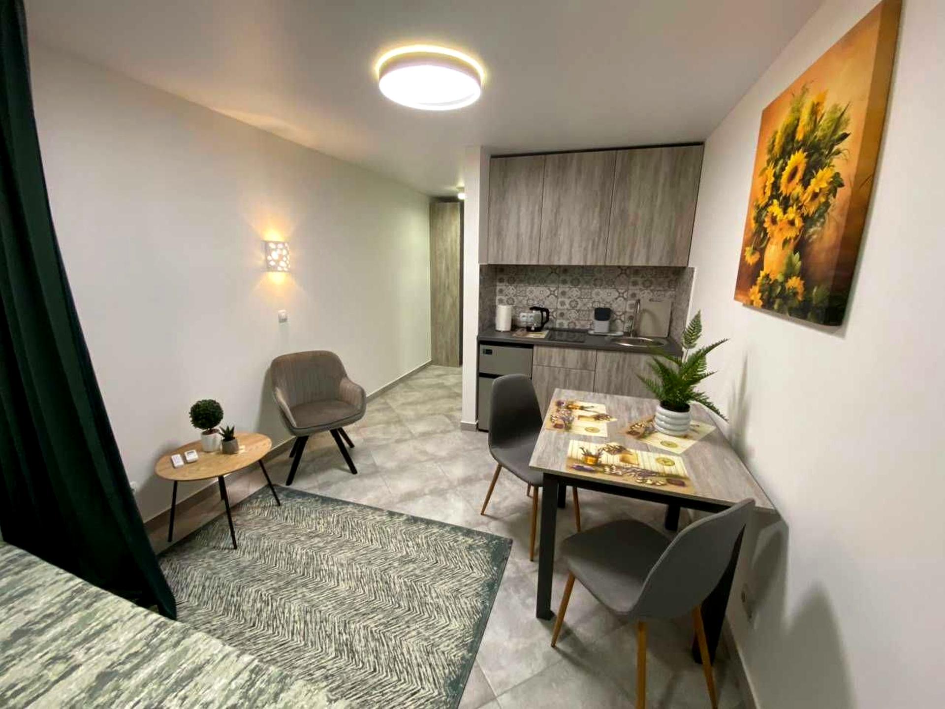 Сучасний ремонт, є повний комплект вбудованих меблів, зручне ліжко, побутова техніка ( пральна машина, телевізор бойлер, кондиціонер, холодильник, варильна поверхня, кухонна витяжка, чайник, рушникосушарка), повний набір кухонного посуду. Квартира дуже затишна і світла. Електричне автономне опалення. Інтернет, Wі-Fі. Все нове, заходь і живи.