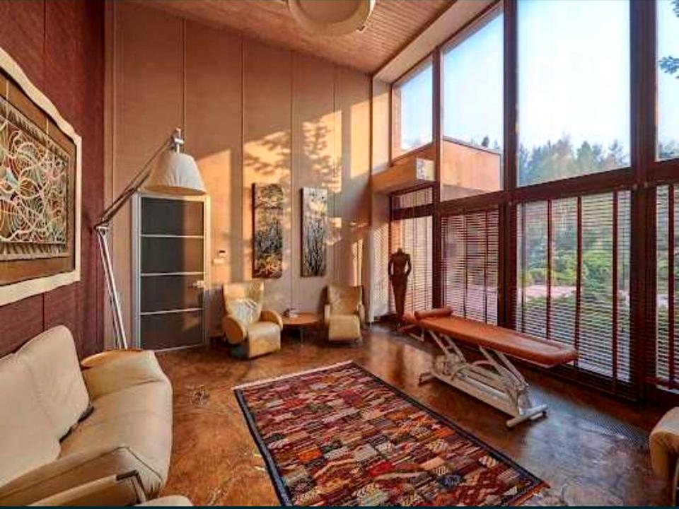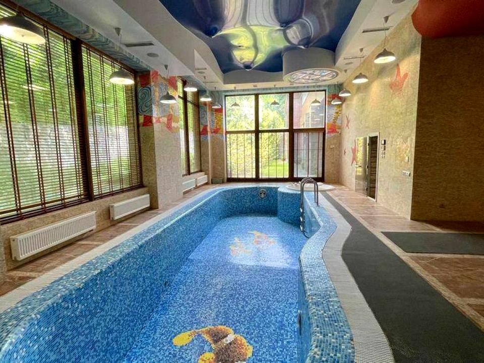 На території резиденції основний будинок на 3 пов 1000м2 в класичному стилі з використанням натуральних і дорогих матеріалів (дерево, мармур).в будинку 6 спалень із санвузлами, вбиральні, дитяча, ігрова, тренажерний зал, сауни, більярдна, гараж на 2 машин + навіс на дворі на 4-5 машин. Меблі привезені на замовлення Італія Turri, техніка провідних світових брендів. При в'їзді на території 2 рівневий будиночок охоронця, так само гостьовий будинок 2 рівн близько 500 м2. у підвальному приміщенні місце зберігання човнів із виїздом на воду, господарські приміщення, цокольний пов – камінний зал, кухня та 2 ет – спальня, санвузол, гаредробна. будинок також обладнаний італійськими меблями, технікою як побутовою, так і кліматичною. Також на території будова 250 м2 з басейном 6*15, римська та фінська парні, душові, кімната відпочинку.
