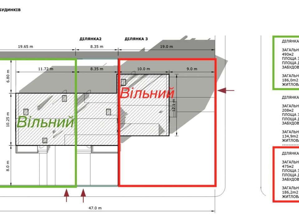 Земельна ділянка — 4.9 соток, огороджена. Призначення — для будівництва і обслуговування житлового будинку.