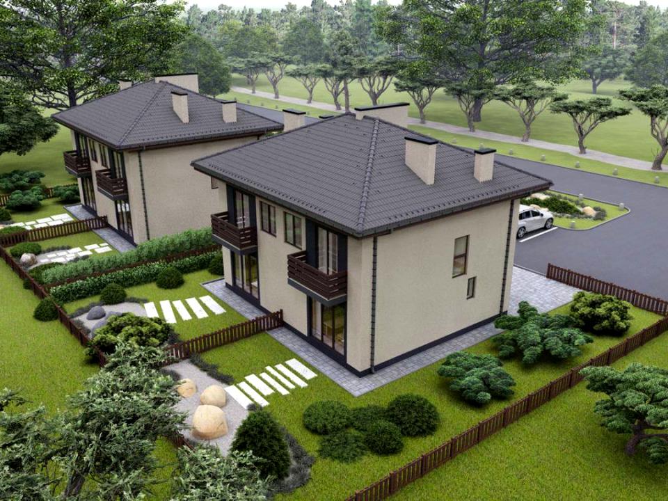 - Земельна ділянка – від 2,4 соток. Це площа земельної ділянки, яка дозволяє мати 2 власних паркомісця поруч з будинком, терасу та загалом все необхідне для комфортного життя;