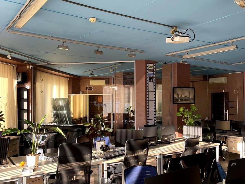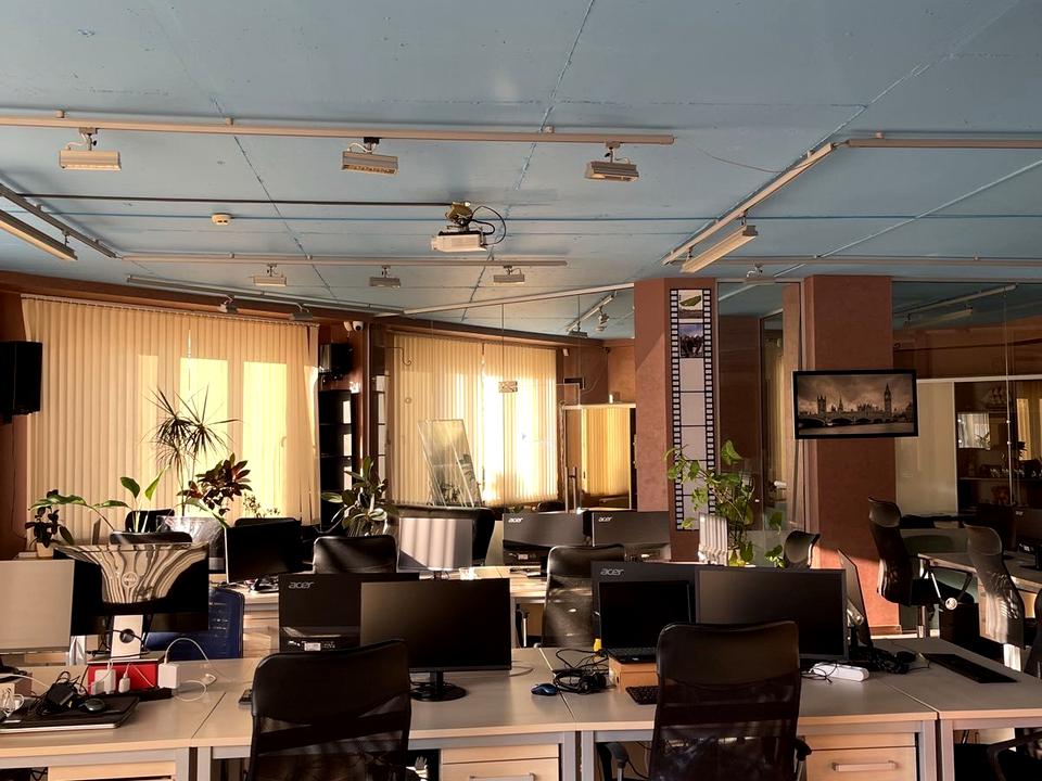 Преимущества: Светлый open space со стеклянными перегородками. Высота потолков — 3 м