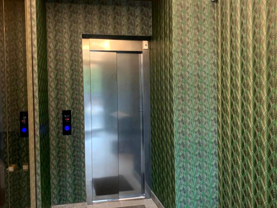 В здании установлен лифт. Лифт едет на мансарду.
