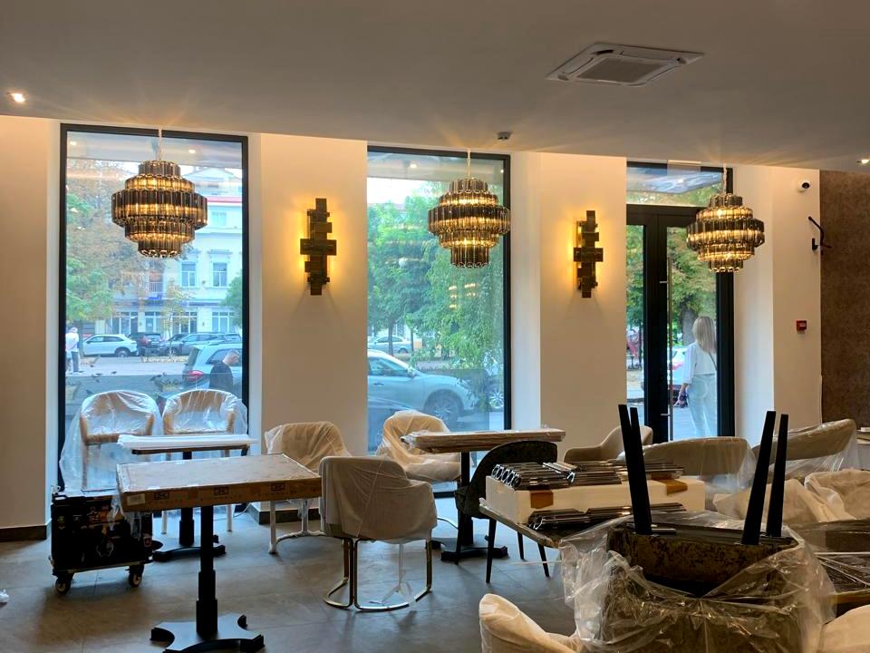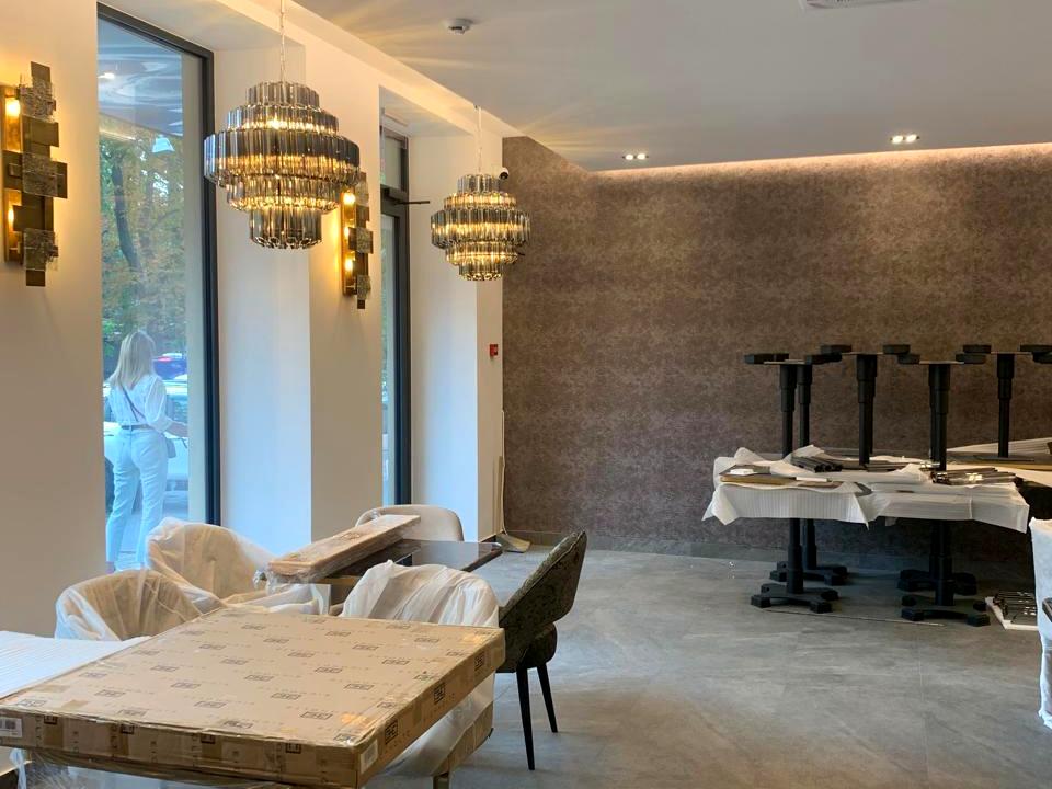 1 этаж-ресепшен, ресторан с мебелью, кухня с оборудованием.