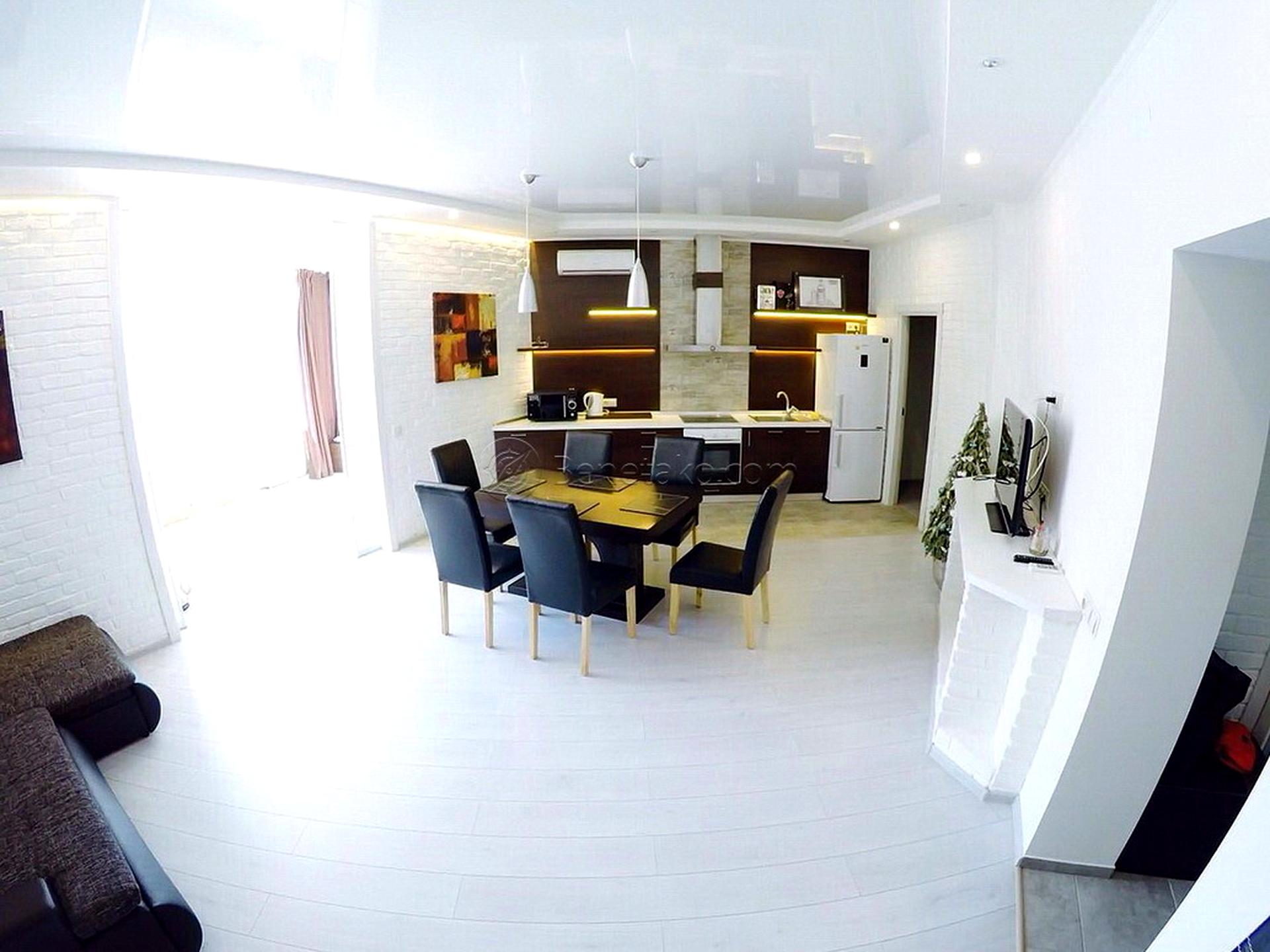Дом - Бетонно монолитный, в квартире 3 комнаты. Вид из окон на проезжую часть. Квартира перепланирована, планировка комнат Смежно-раздельная. Газа нет, кухонная плита электрическая. Горячая вода - централизованная. Отопление автономное. Совместный санузел, туалет/ванна. Есть сантехника. Есть подогрев полов. Балкона нет. Окна металлопластиковые. В квартире есть Телевизор, Кабельное ТВ, Интернет, Утюг, Фен, Шкаф, Холодильник, Кровать, Стиральная машина, Микроволновка, Посуда, Кондиционер. Дом построен в 2014 году. Общее состояние квартиры - Евроремонт. Охрана, Консьерж. Рядом есть супермаркет, остановки, развлекательные заведения, море. Комиссия за услуги 50 %