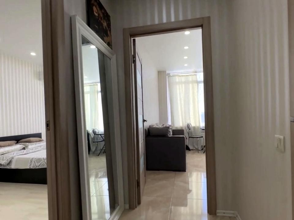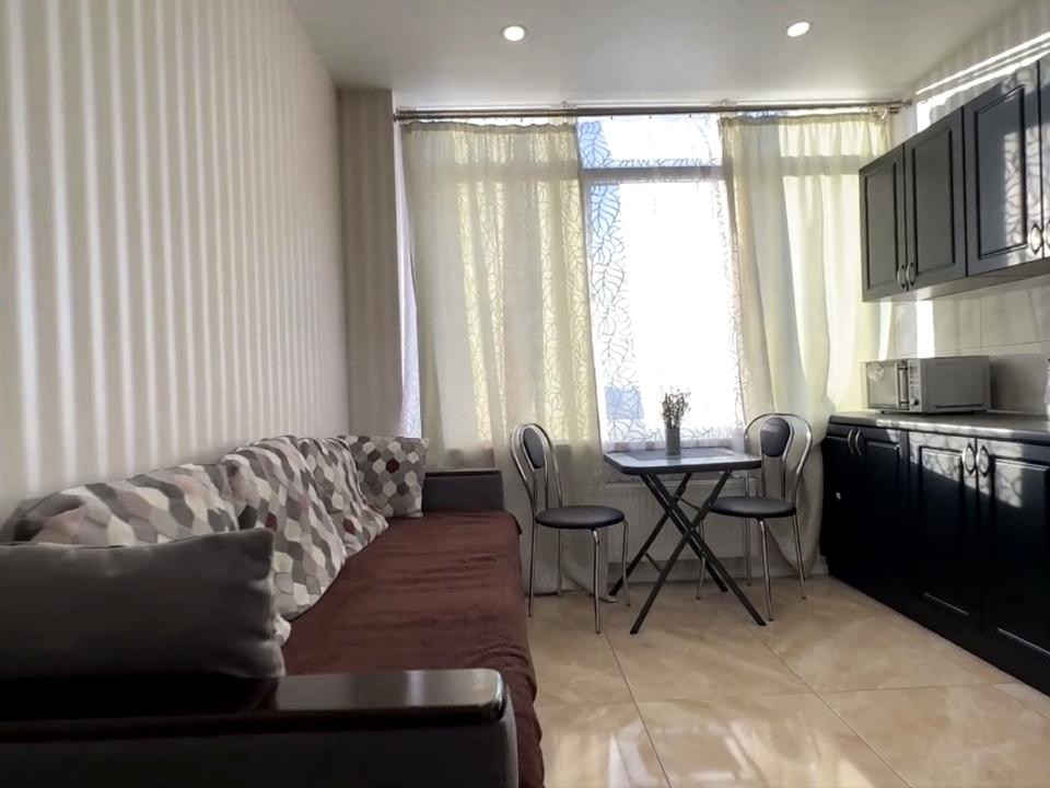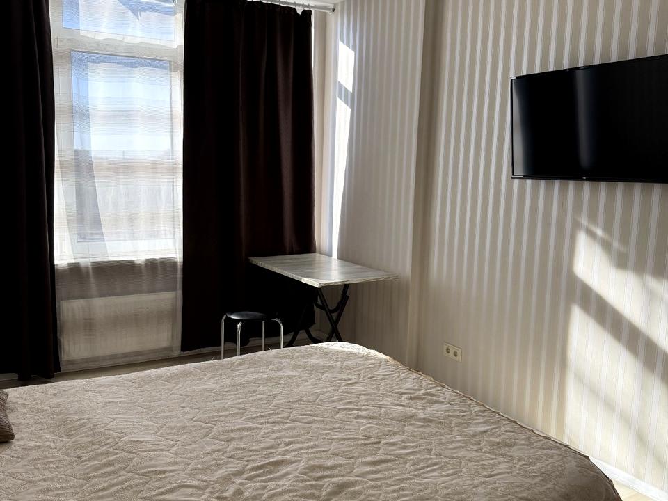 В квартире 1 комната, Технологія будівництва - Блочна. Квартира стандартная, планировка комнат Раздельная. Кухонная плита электрическая. Есть отопление. Совместный санузел, туалет/душ. Есть сантехника. Окна металлопластиковые. В квартире есть Телевизор, Утюг, Шкаф, Кровать, Кондиционер, Стиральная машина, Душевая кабина, Холодильник, Микроволновка, Посуда, Сигнализация, Счетчики. Дом построен в 2020 году. Общее состояние квартиры - С ремонтом. Консьерж, Охрана. Рядом есть остановки, развлекательные заведения, супермаркет, море. Работает без света - вода, отопление, лифт. Комиссия за услуги 50 %