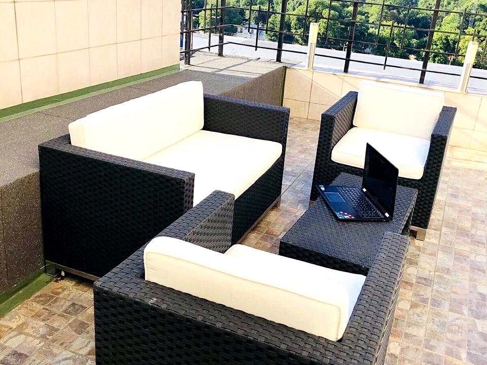 Две спальни, кухня студия с кабинетом и с террасой.