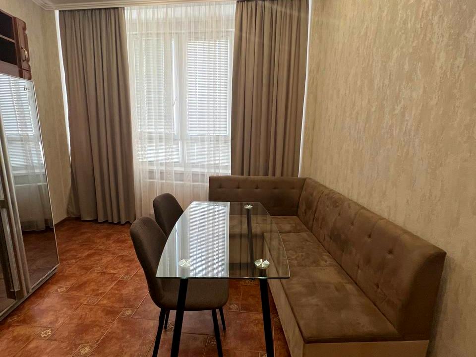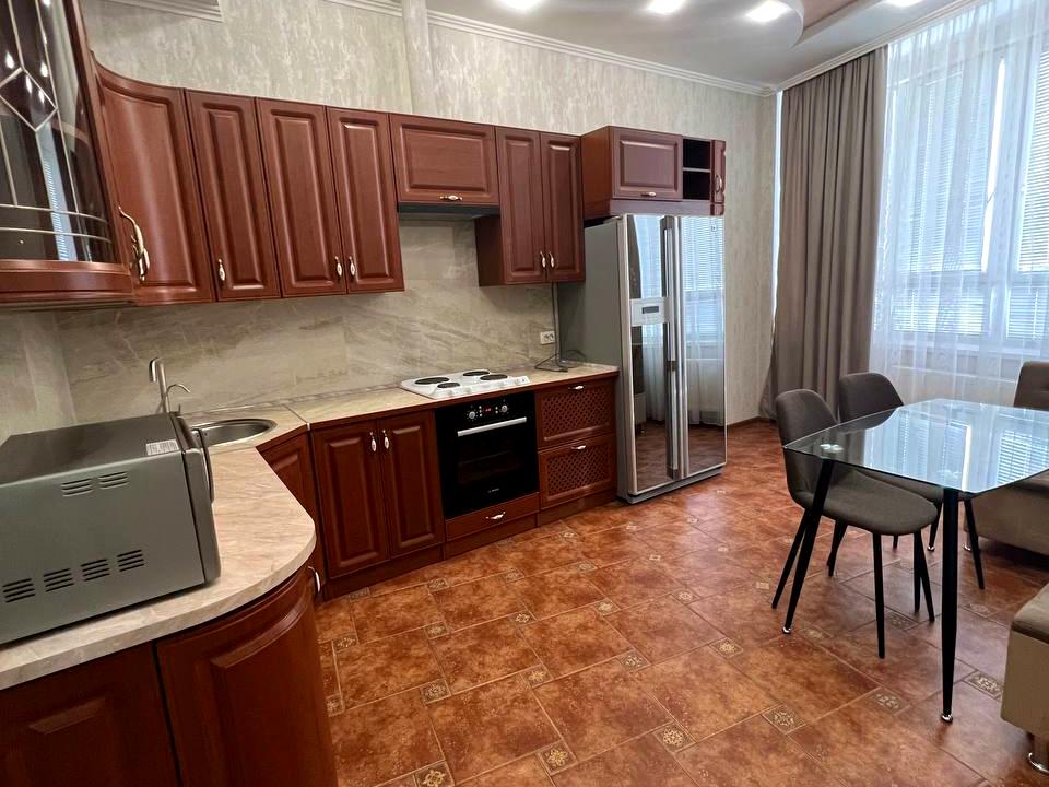 В квартире 2 комнаты, высота потолков 2.8 метра, Технологія будівництва - Цегляна, Тип будинку - Спец. проект. Кухонная плита электрическая. Есть балкон. В квартире есть Телевизор, Кабельное ТВ, Утюг, Кондиционер, Стиральная машина, Холодильник, Микроволновка, Посуда. Дом построен в 2010 году. Общее состояние квартиры - С ремонтом. Горячая вода - электрический бойлер. Количество санузлов: 1. Интернет оптоволоконный. Тип кухни - кухня-студия. Количество спален: 2. Комиссия за услуги 50 %