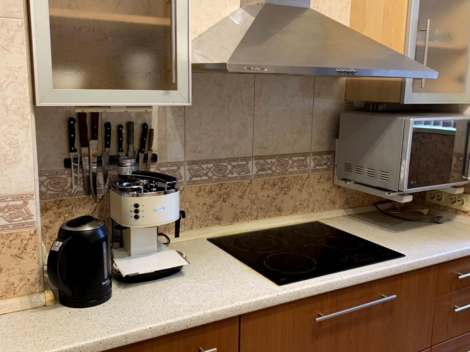 Встроенная кухня, духовка, микроволновка, чайник.