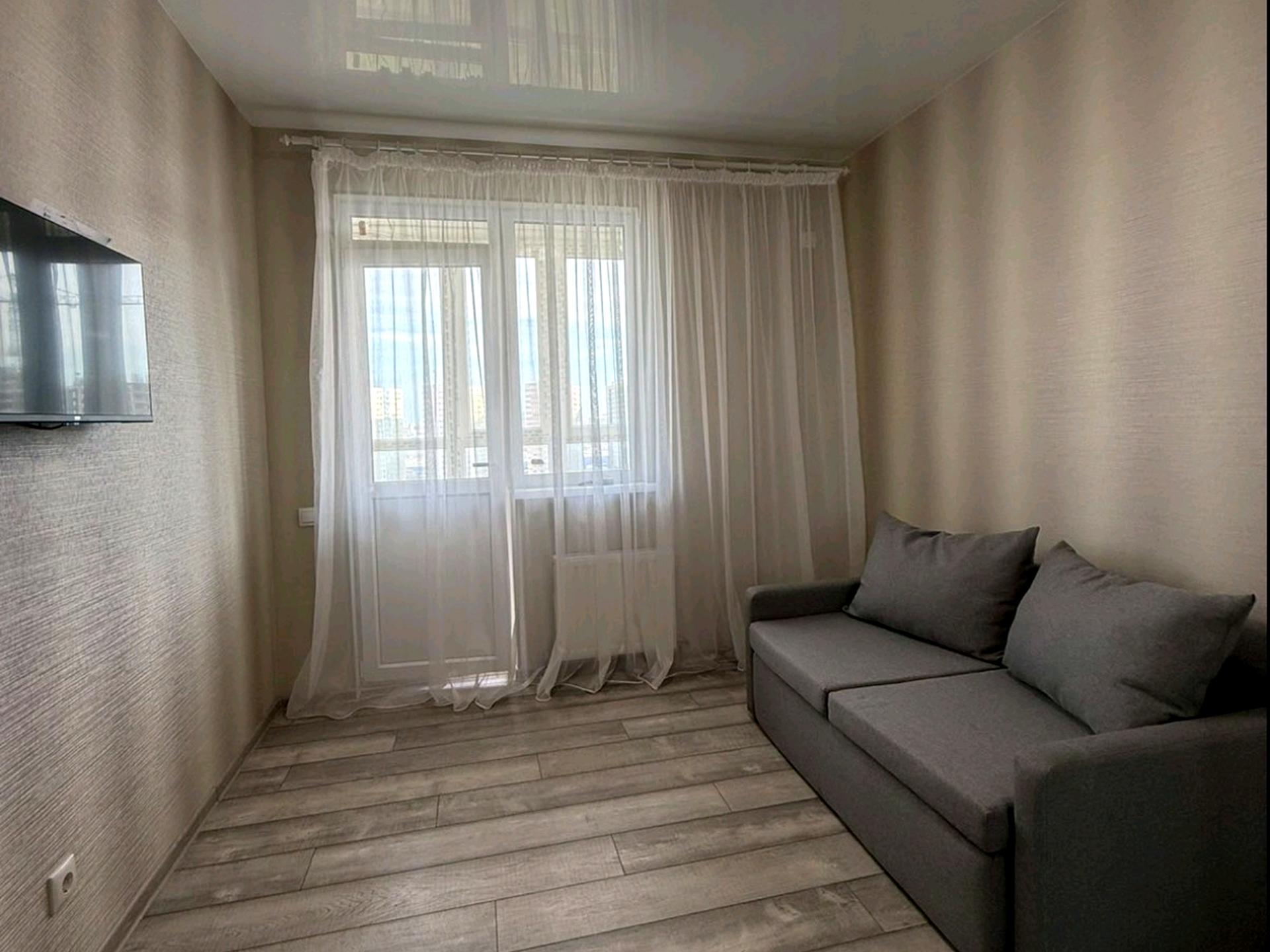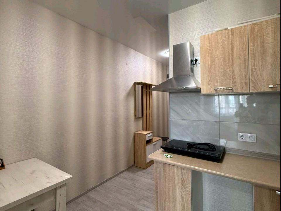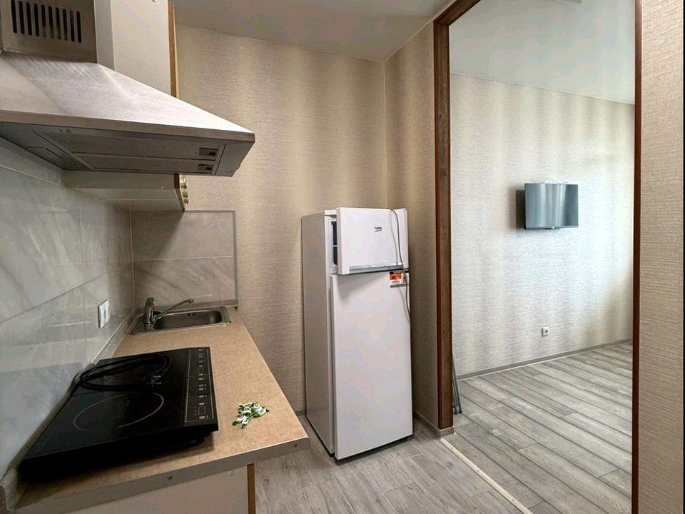 В квартире 1 комната. Кухонная плита электрическая. Есть балкон. Общее состояние квартиры - С ремонтом. Горячая вода - электрический бойлер. Количество санузлов: 1. Интернет оптоволоконный. Тип кухни - кухня-студия. Количество спален: 1. Есть подземный паркинг, доступный как укрытие. Комиссия за услуги 50 %