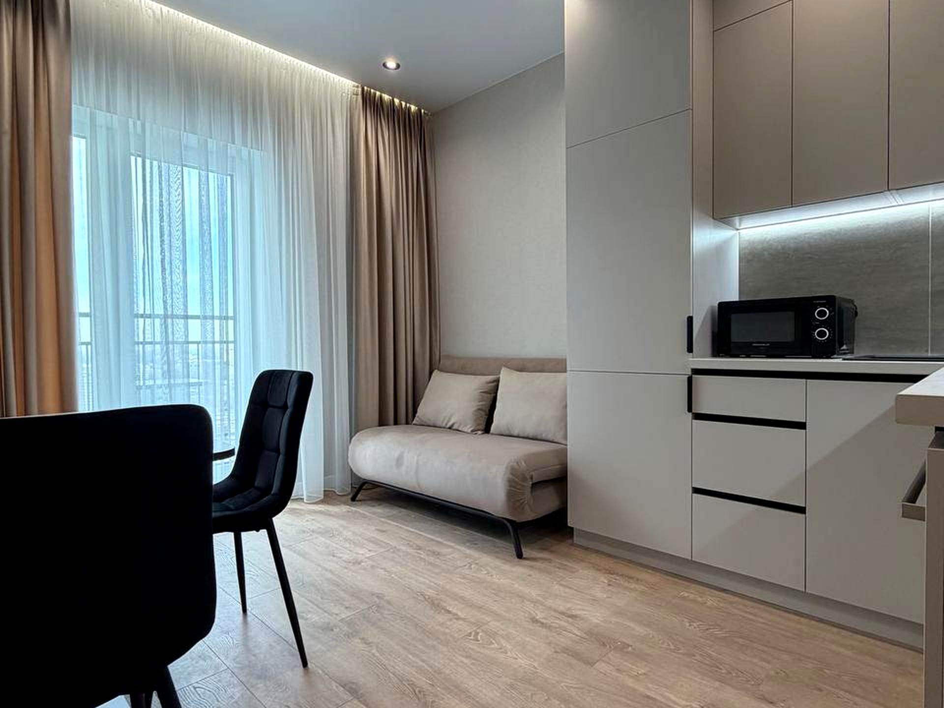Пропонується в оренду сучасна 1-кімнатна квартира з новим ремонтом у комфортному житловому комплексі.