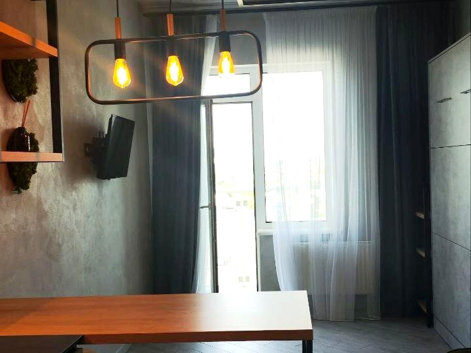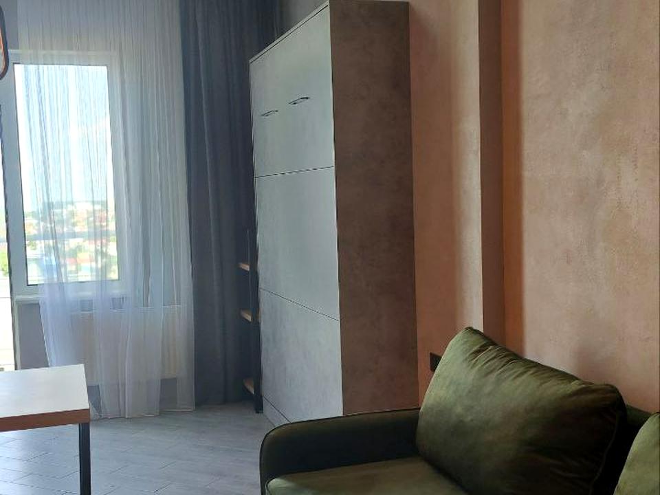 Квартира с мебелью и техникой: кровать скрытого монтажа, диван раскладывается ( дополнительных 2 спальных места) встроенная кухня, холодильник, бойлер, стиральная машина, телевизор.