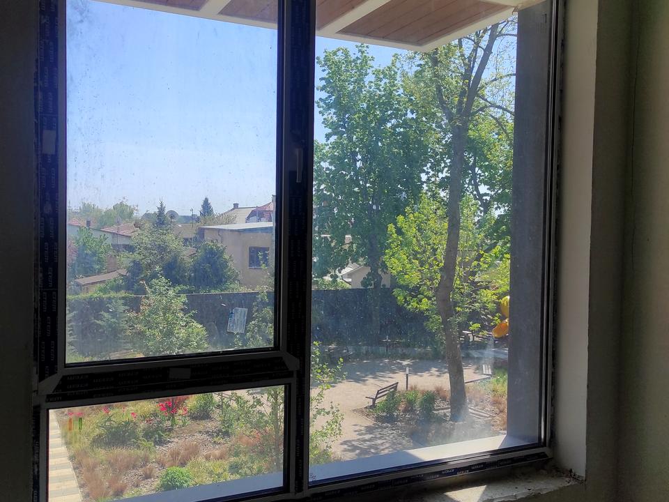 Окна: Прекрасный вид на благоустроенный, зелёный придомовой сад — здесь всегда тихо и спокойно.