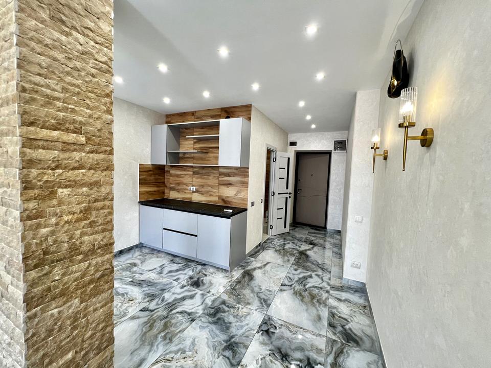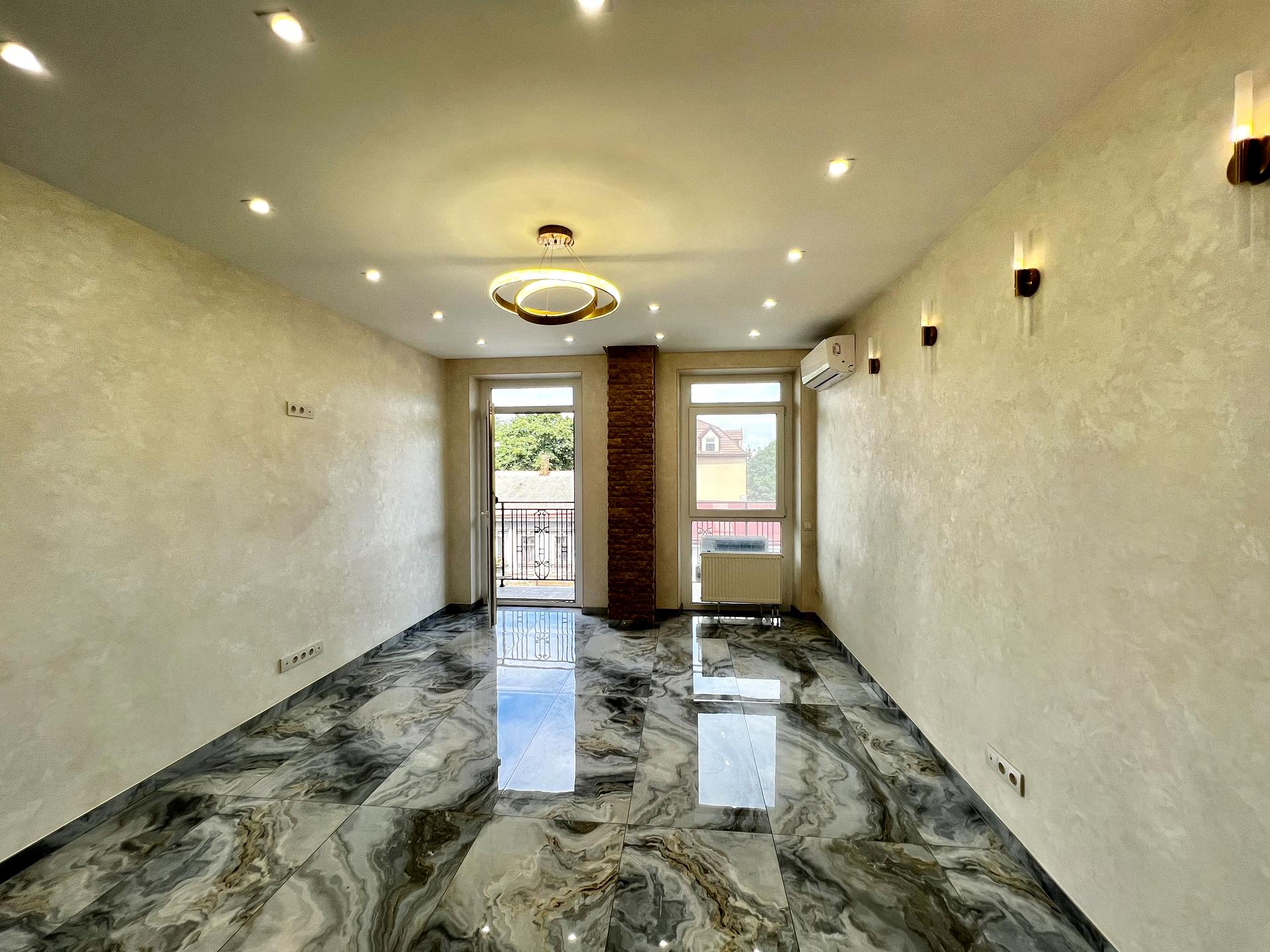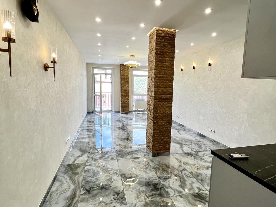 Квартира студія з балконом на всю квартиру з видом на місто - малу арнаутську. Є всі виводи для побутової техніки на кухні.