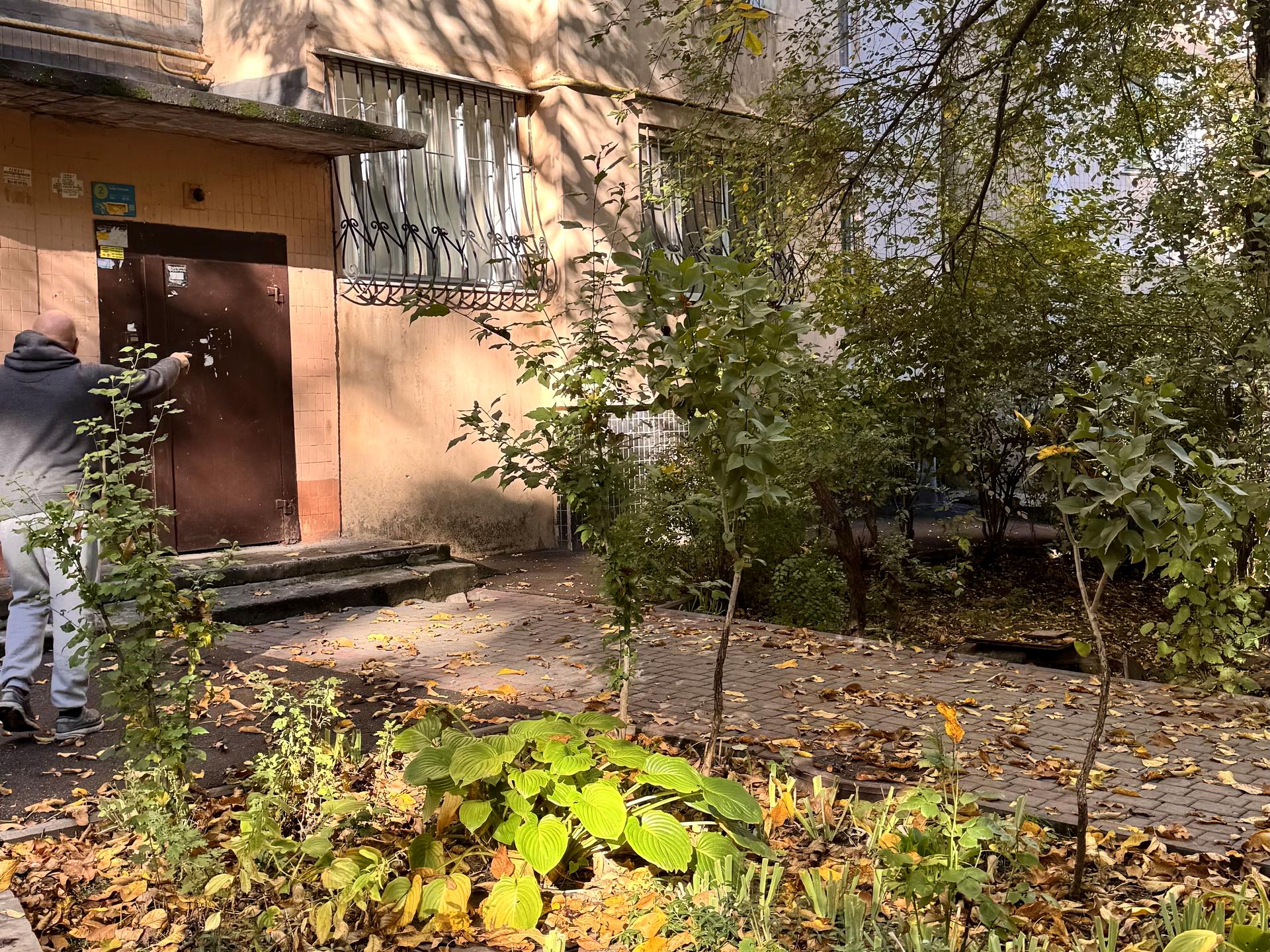 С одной стороны вход в квартиру, с фасада в офис.