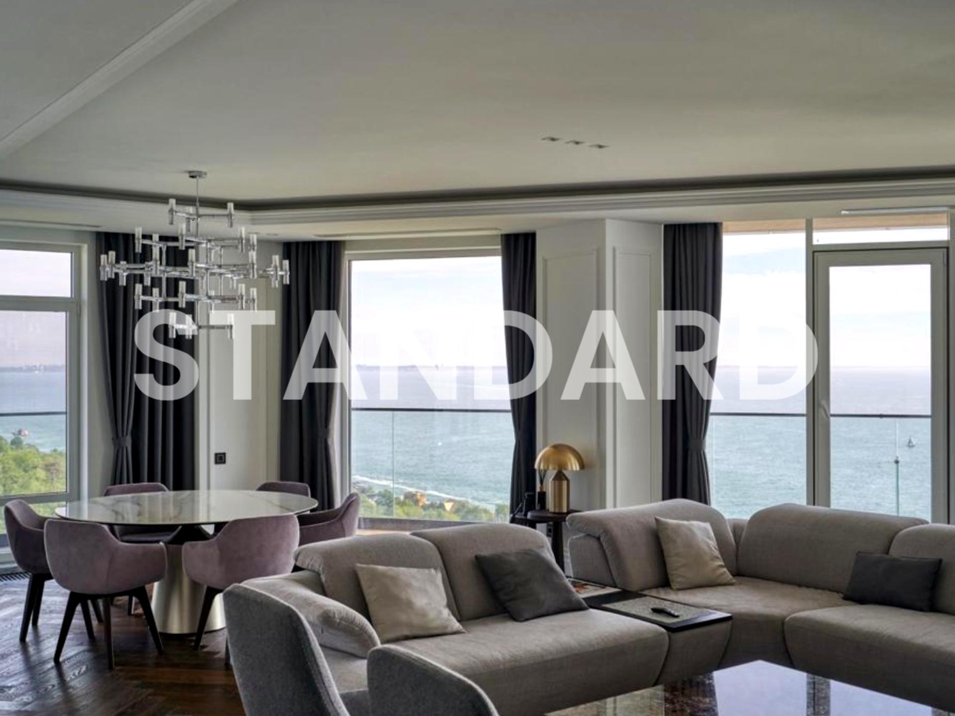 о всех окон квартиры открывается вид на море и парк. Квартира на 12 этаже , общей площадью 266 кв.м: