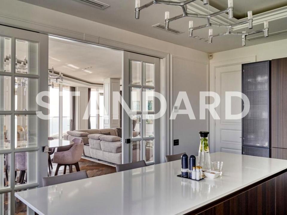 Выполнен ремонт в современном стиле ,укомплектована итальянской мебелью Poliform, Rimadesio , Praddy, Porada, кресло Walter Knoll Leadchair, стол и стулья Cattelan Italia, картины Ralph Lauren, сантехника Axor и Villeroy & Boch, и техникой Siemens, матрас King Koil и тд. Пол паркет и мрамор с подогревом, центральное кондиционирование, видео наблюдение.