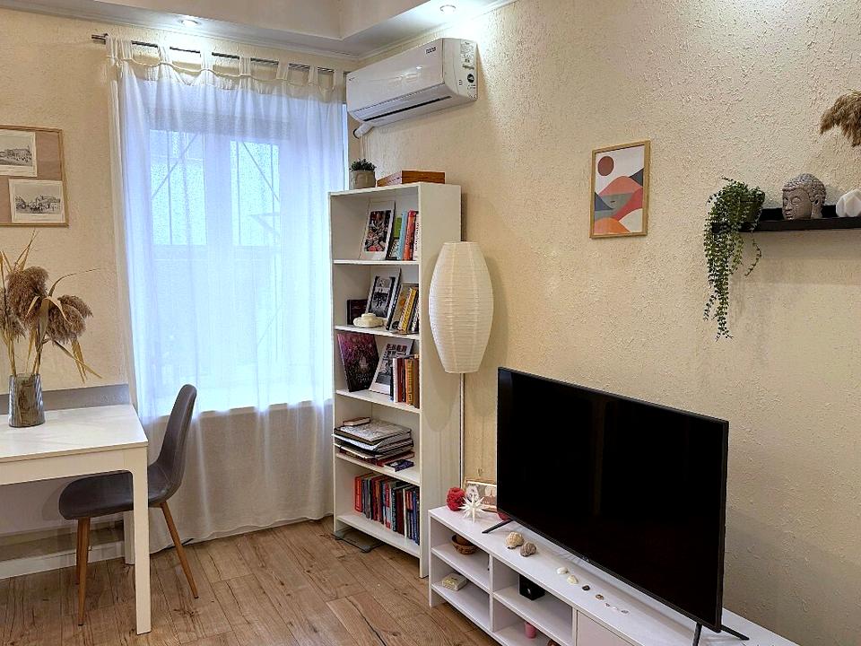 Южная / Колонтаевская, рекомендуем купить прекрасную квартиру, расположенную на 1 этаже крепкого старинного 3-этажного дома, 33/18/10 кв.м, две небольшие солнечные раздельные комнаты (12 и 8 кв.м), удобная кухня открытого типа, сан. узел с душевой системой, стильный современный дизайн интерьера, абсолютно новый капитальный ремонт с заменой всех коммуникационных систем, заменена вся электропроводка, выровнены полы и уложен красивый надежный ламинат, система «теплый пол» в ванной комнате, новые трубы подачи и отвода воды, установлены шумоизоляция в спальне, бойлер, кондиционер, полностью укомплектована мебелью и бытовой техникой, окна в тихий уютный аутентичный одесский дворик, отличная современная квартира в начале Молдаванки в двух шагах от Соборной площади и Дерибасовской!
