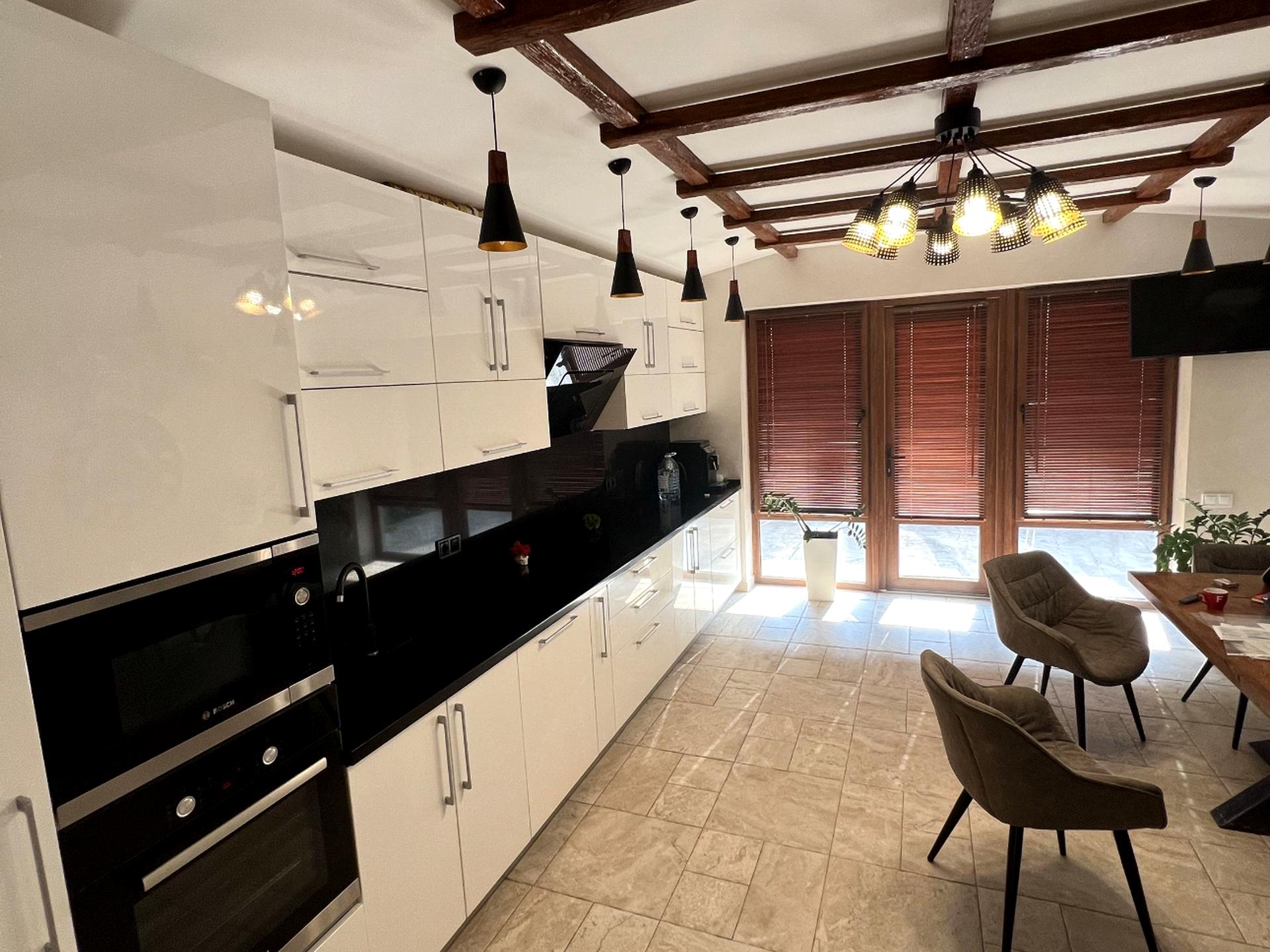 На первом -гостинная.,гардеробная ,санузел ,кладовая,большая просторная кухня,дворик-патио для отдыха и мангала