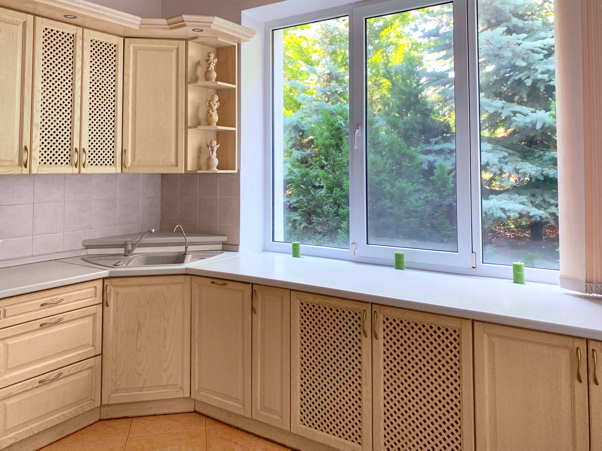 стільниця натуральний граніт «Mon Blanc», в будинку дубові двері, паркет, дубові меблі (кухня, спальні, кабінет, сауна), + натуральний екологічний ротанг, шкіряні меблі, італійський стіл «Calligaris», вся іспанська плитка, с/в «Villeroy & Boch», меблі та техніка від провідних брендів.