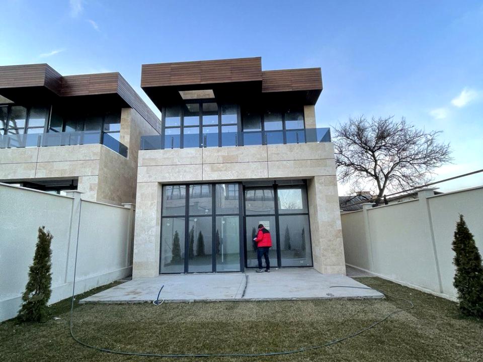30264.Продам стильный дом возле моря в районе Дачи Ковалевского. 10 минут от моря. Построен из качественных материалов. Фасад дома в отделке травертин. Общая площадь 170 кв.м., высокие потолки 3,5 метра. Крышная терраса 100 кв.м. Все коммуникации городские. Панорамное остекление алюминиевый профиль. Два этажа. Распланирован: на 1 этаже входная группа, холл, кухня-студия, санузел, комната. На 2 этаже: коридор, 2спальни, кабинет, санузел и выход на крышную террасу 100 кв.м. Стены кирпич. Расположен на 3 сотках земли. Есть госакт. Есть парковочное место возле дома. Закрытая территория, удобный заезд с улицы Долгой и 411 батареи.