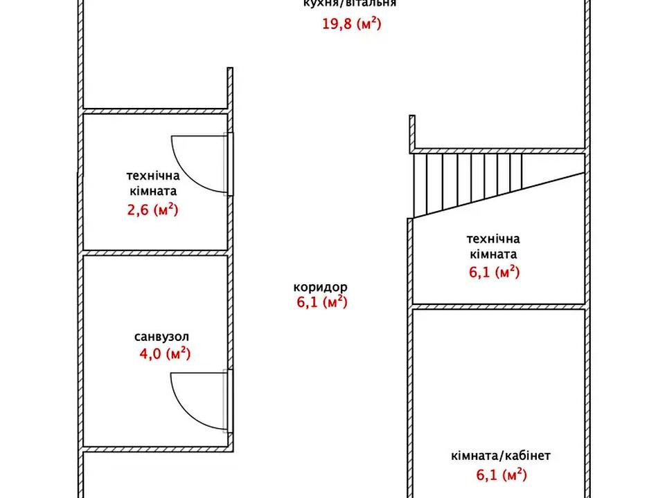 • Технічна кімната з комунікаціями + комора під сходами